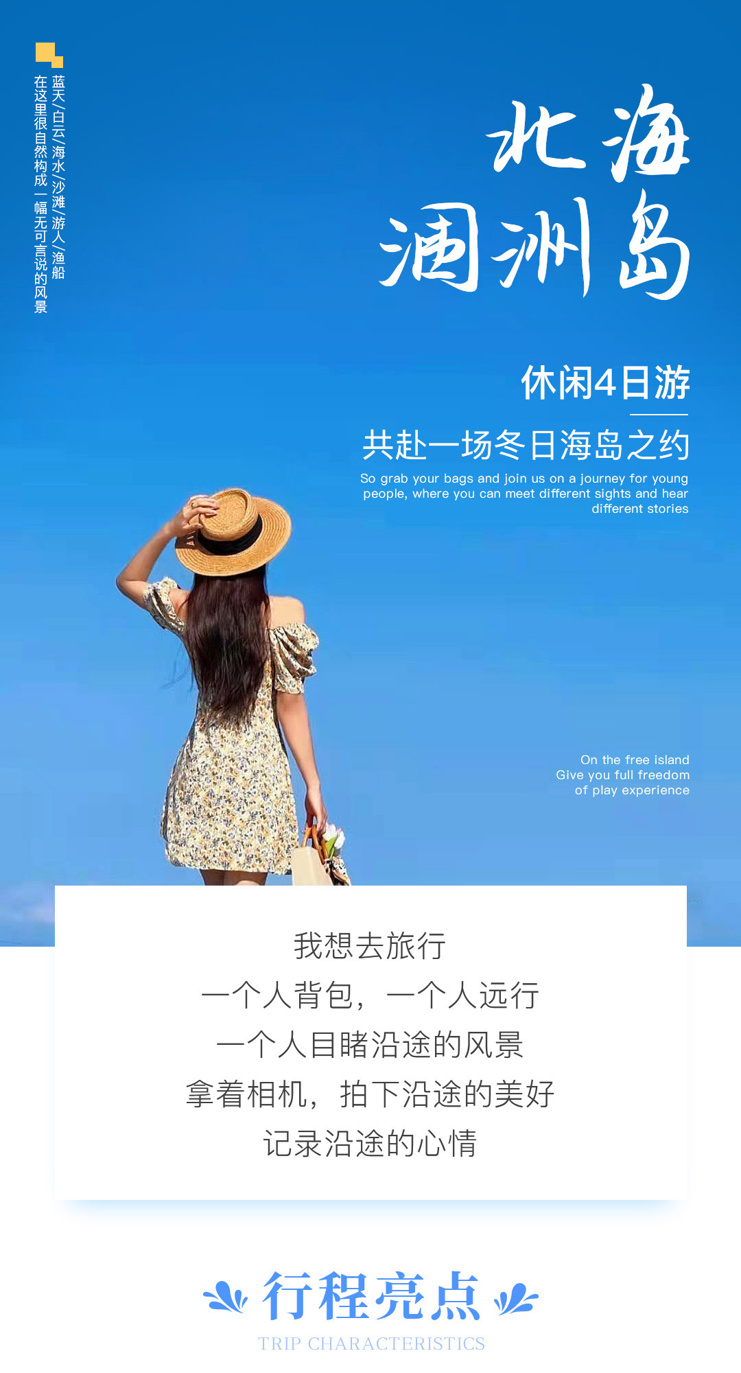 那就拿上行囊,跟我们一起,开始一场,专属于年轻人的旅行,行在路上,邂逅不同风物,聆听不一样的故事。 旅行主题:单身旅行主题; 景观亮点:碧海蓝天,椰风海韵; 参团客群:18-38岁未婚者; 团队人数:12人起成团,低于12人此团自动解散,所支付费用自动返回原账户; 集合解散:成都出发,成都散团; 特别告知:本产品全程纯玩无购物; 支付方式:在线支付+团上现付,详情请查看“费用包含”栏。