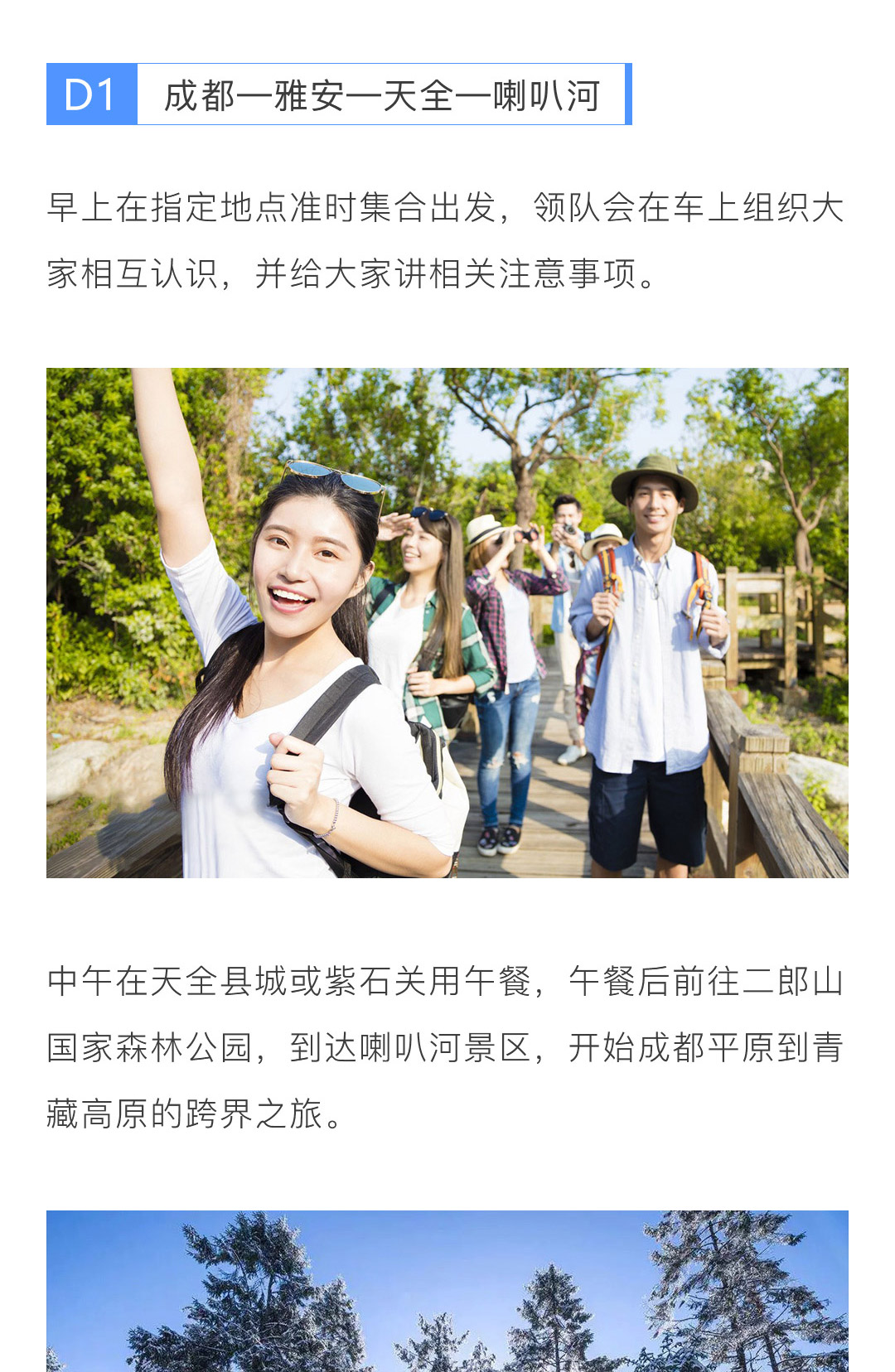 冬天的喇叭河,总是有说不完的惊喜,再多的赞美之词,都不足以形容这里的闲适安逸,花个两天时间,去喇叭河看漫天飞雪,和水鹿亲密接触,邂逅一段全新的故事,不用徒步也能看到日出云海,简直不要太完美。 旅行主题:单身旅行主题; 景观亮点:本欧神话,云海日出,邂逅水鹿; 参团客群:18-38岁未婚者; 团队人数:16人起成团,低于16人此团自动解散,所支付费用自动返回原账户; 集合解散:成都出发,成都散团; 特别告知:本产品全程纯玩无购物; 支付方式:在线支付+团上现付,详情请查看“费用包含”栏。